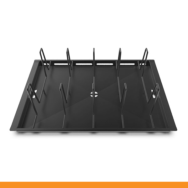 Roasting and Braising Grelha em inox antiaderente, com suporte vertical, para grelhar até 10 frangos. Equipado com coletor de gordura e dreno central compatível com SMART.Drain.