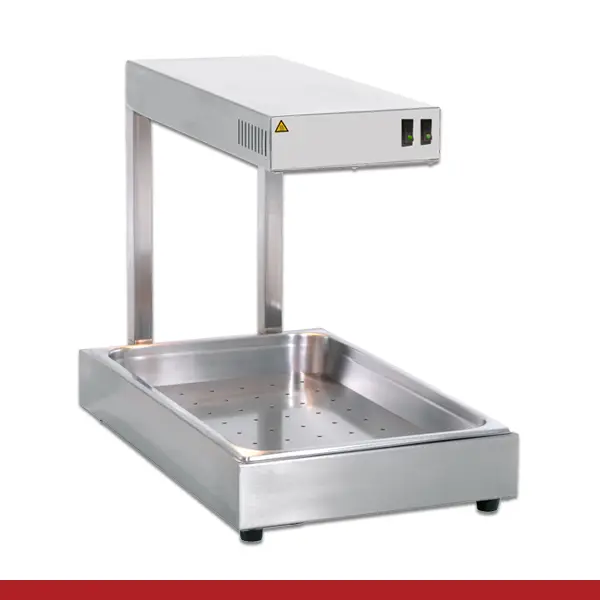 • Construção em aço inox • Equipado com cuba perfurado GN 1/1 • Resistências de aquecimento no topo • Interruptor On/Off com luz On