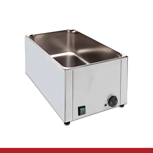 • Estrutura em aço inox • Modelo sem torneira • Equipado com proteção em antirefluxo • Termostato com temperatura regulável até aos 90ºC • Interruptor on/off •Containers não incluídos