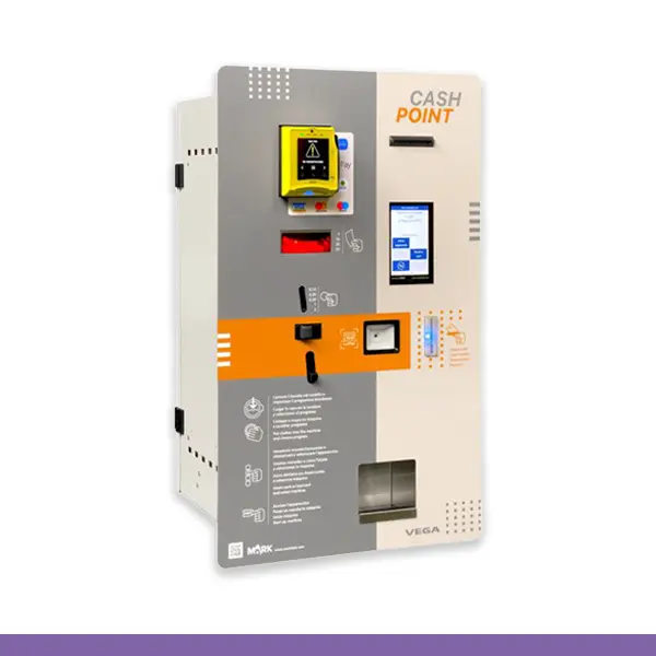 Central de pagamentos para encastrar com touch screen de 5” à prova de vandalismo com sensor de presença e de luz integrado. Com capacidade para controlar até 12 dispositivos. Inclui leitor de notas, leitor de moedas eletrónico, leitor de cartões e recuperador de moedas iluminado.