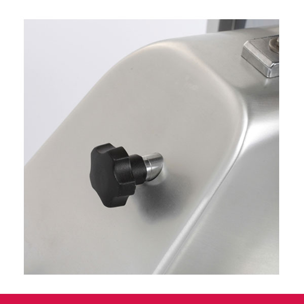 Cortadora profissional estudada para cortar carnes frias. Desenvolvida ao mínimo detalhe, arredondada e sem qualquer bordas permite uma limpeza fácil e completa.