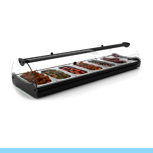 ▪Temperatura: +80ºC ▪ Frente rebatível e portas traseiras para facilitar a função self-service ▪ Portas de fácil extração e limpeza ▪ Controlo digital regulável da temperatura, exceto mod. SHM ▪ Cuba embutida em aço inox com drenagem, sem ângulos que facilitam a limpeza ▪ High Power LEDs de última geração e consumo mínimo