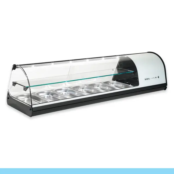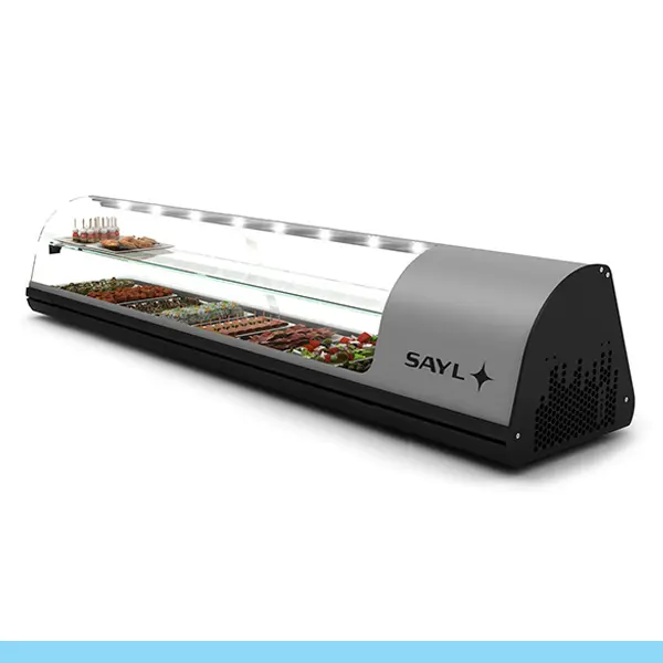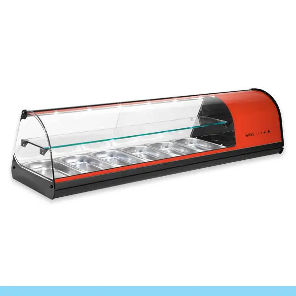 • Portas de correr para fácil extração e limpeza • High Power LEDs de última geração de mínimo consumo • Termóstato eletrónico regulável “Sayl-Blue” • Compressor hermético turbo silencioso, de qualidade de topo “Secop”