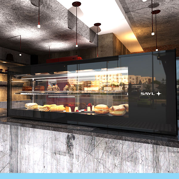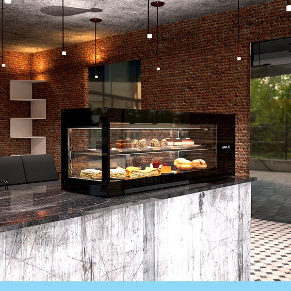 Expositor com todos os vidros duplos, que une a simplicidade e elegância para a melhor exposição.