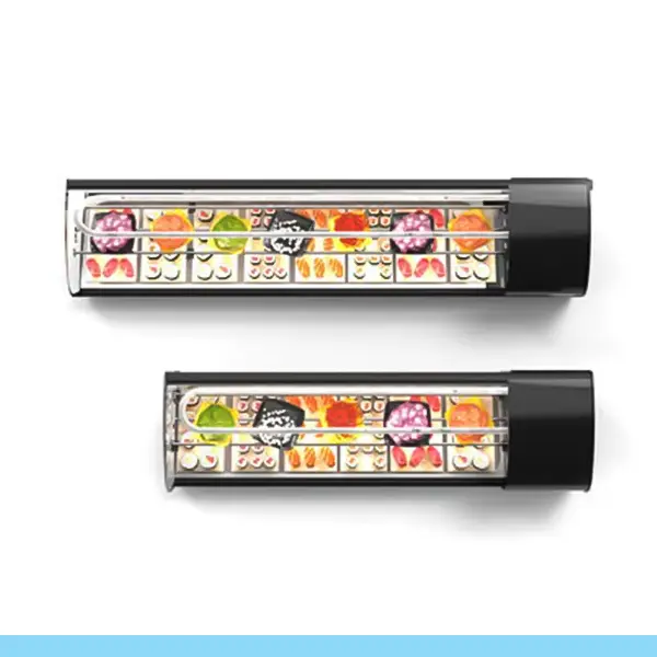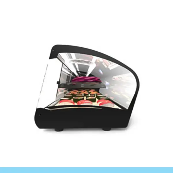 Expositor com espetacular design e uma tecnologia de baixo consumo que poupa até 50% de energia. Com estante intermédia em vidro refrigerada +8ºC/+12ºC