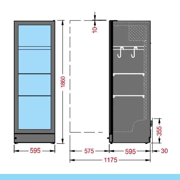 Medidas: 595L x 602P x 1858A mm | Temperatura: +1ºC / +2ºC | Capacidade: 368 Lts