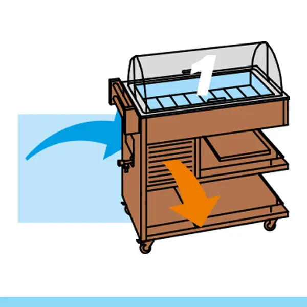 Características gerais ▪Medidas: 1008L x 555P x 1066A mm | Temperatura: -1ºC / 0ºC | Plano refrigerante: 780L x 410P x 110A mm ▪ Cuba de aço inoxidável AISI 316 resistente ao saL ▪ Grelhas de ventilação em aço inoxidável ▪ Evaporador incorporado no poliuretano do reservatório