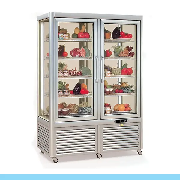 Características gerais ▪ Termodinâmica R290 ▪ Unidade de controlo eletrónico ▪ Estrutura exterior em alumínio ▪ 5 prateleiras standard por compartimento (variável consoante o modelo e a temperatura; duplas nas versões 2 portas ▪ Vidros triplos, com isolamento a gás, de série, em cada lado ▪ Isolamento térmico da cuba com poliuretano ▪ Rodas giratórias com e sem travão ▪ Puxador frontal na porta ▪ Iluminação LED em fila dupla