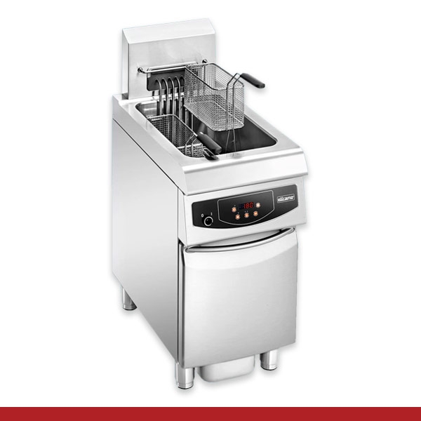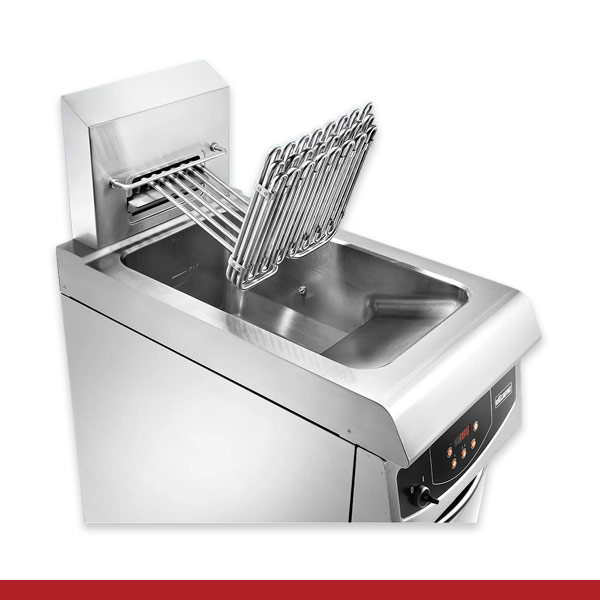 Estes modelos são equipados com a função de “fusão” para aquecimento controlado do óleo. Durante o estágio de fusão inicial, a entrada de energia é de apenas 9 kW, permitindo gradualmente que o óleo atinja uma temperatura de 90 ° C. Esta fase é essencial para evitar o sobreaquecimento do óleo perto da fonte de calor enquanto a temperatura do óleo ainda é baixa. Após esta fase inicial, as fritadeiras de gás de alta performance NG-S mudam para um ajuste de potência intermediária para levar o óleo até a temperatura de fritura necessária.