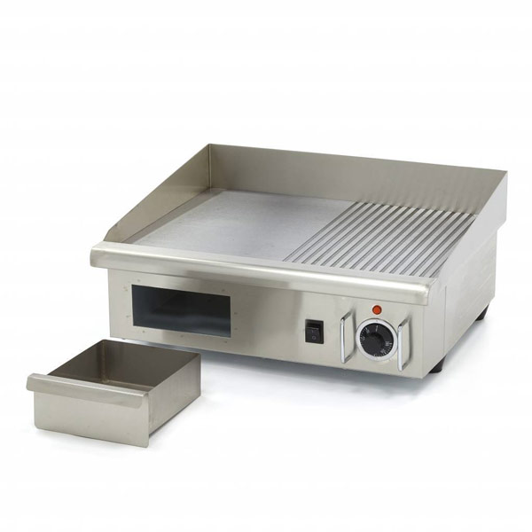 Frytops elétricos profissionais bastante resistentes para uso contínuo.