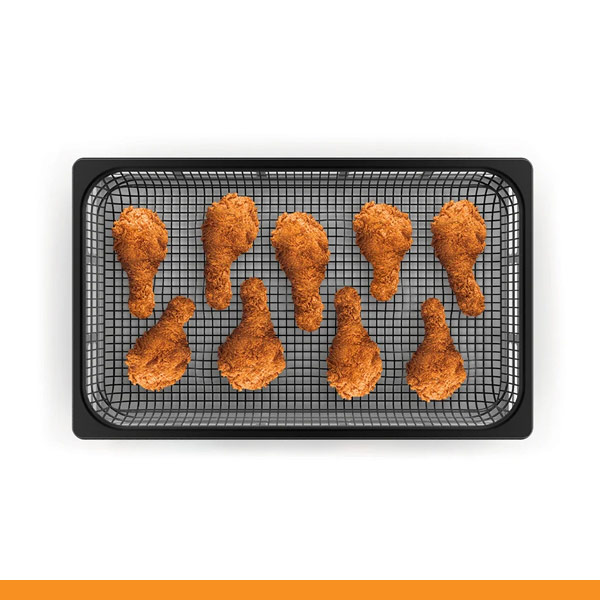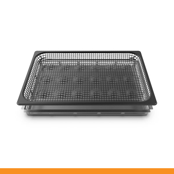 Grelha em inox perfurada antiaderente com tabuleiro de recolha de gordura