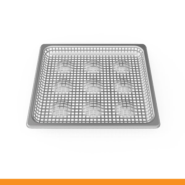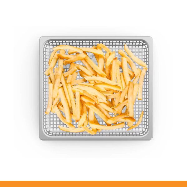 Eggs and frying Grelha em inox perfurada para batatas fritas.