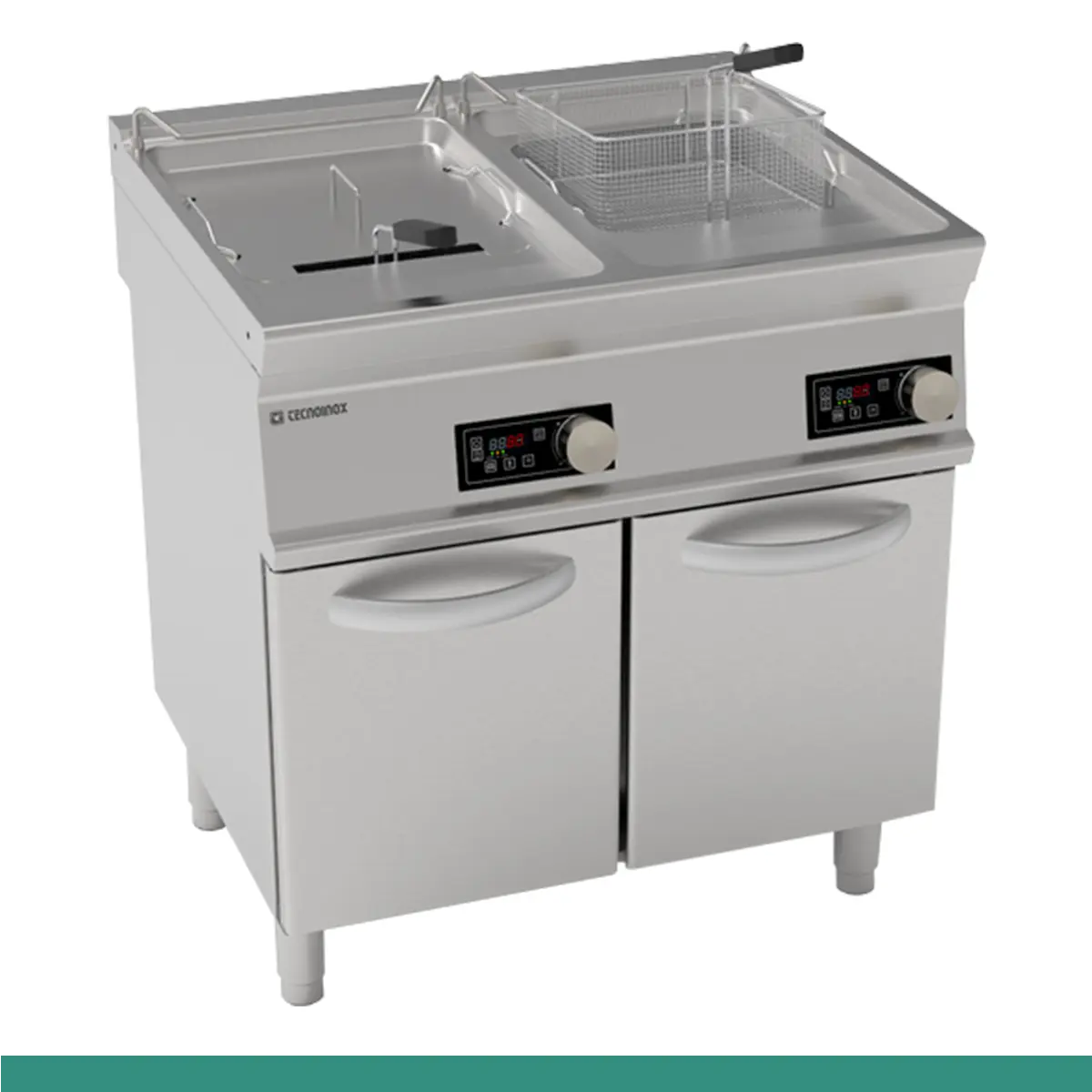 Fritadeira Elétrica com Controlo Eletrónico 17+17 Lts Tanque com Resistências Elevatórias sobre Armário Fechado