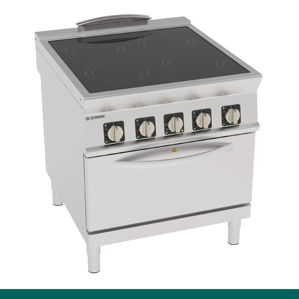 Fogão de 4 Zonas Quentes em Vitrocerâmica com Forno Elétrico Estático GN 1/1 com 1 Grelha